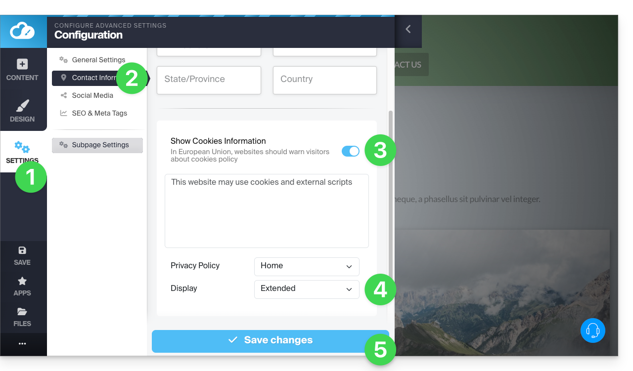 - Cliquez sur Coordonnées de contact sous Configuration du site Web.