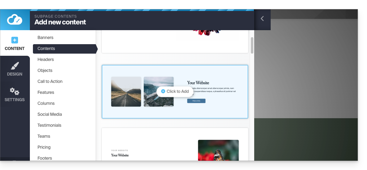 - Cliquez sur le bouton Contenu dans le menu latéral gauche.
