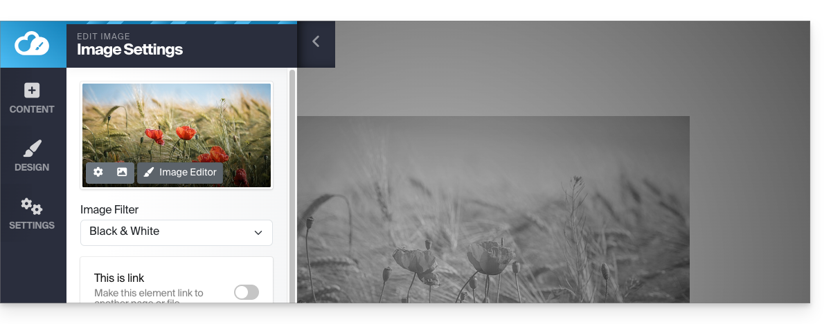 - Une fois l'image ajoutée, vous pouvez également en faire un lien cliquable ou modifier sa taille dans l'éditeur d'image: