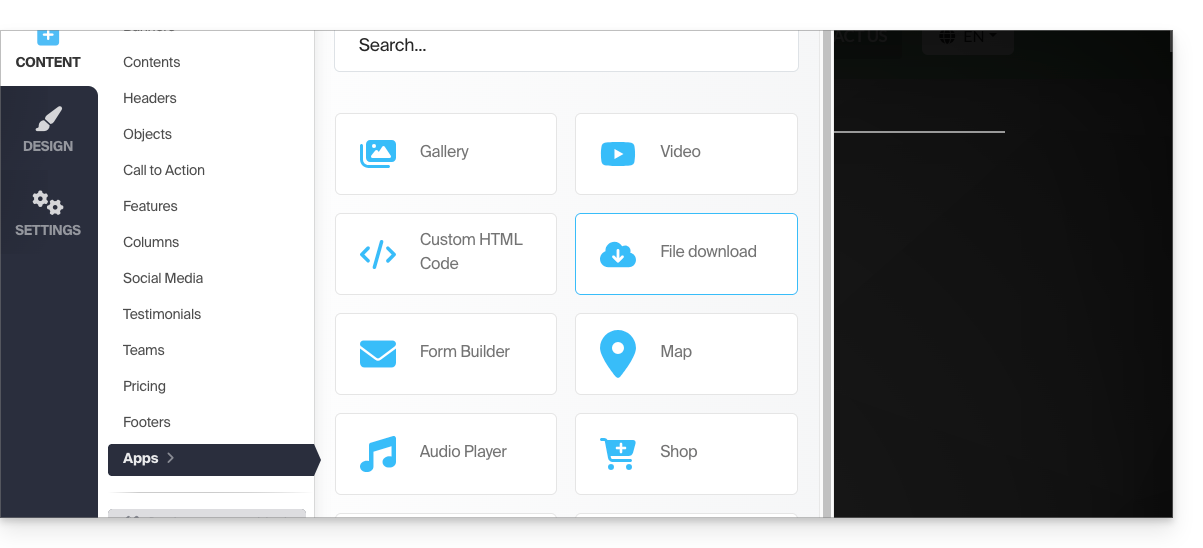 - Cliquez sur le widget Téléchargement de fichier pour l'insérer dans la page: