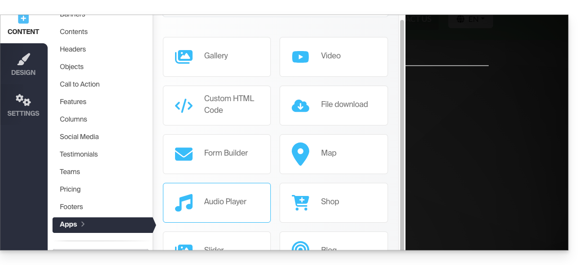 - Cliquez sur le lecteur audio pour l'insérer dans la page et choisir les fichiers: