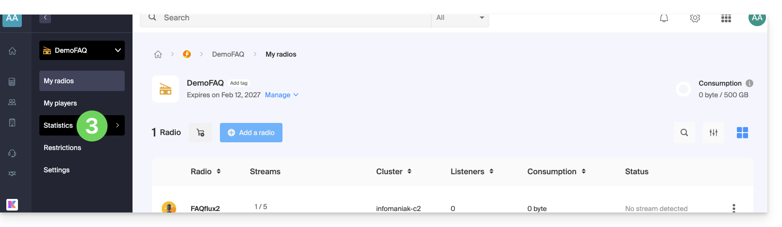 Ce guide concerne les statistiques de Streaming Radio qui vous permettent entre autre de consulter d'éventuelles coupures de flux.