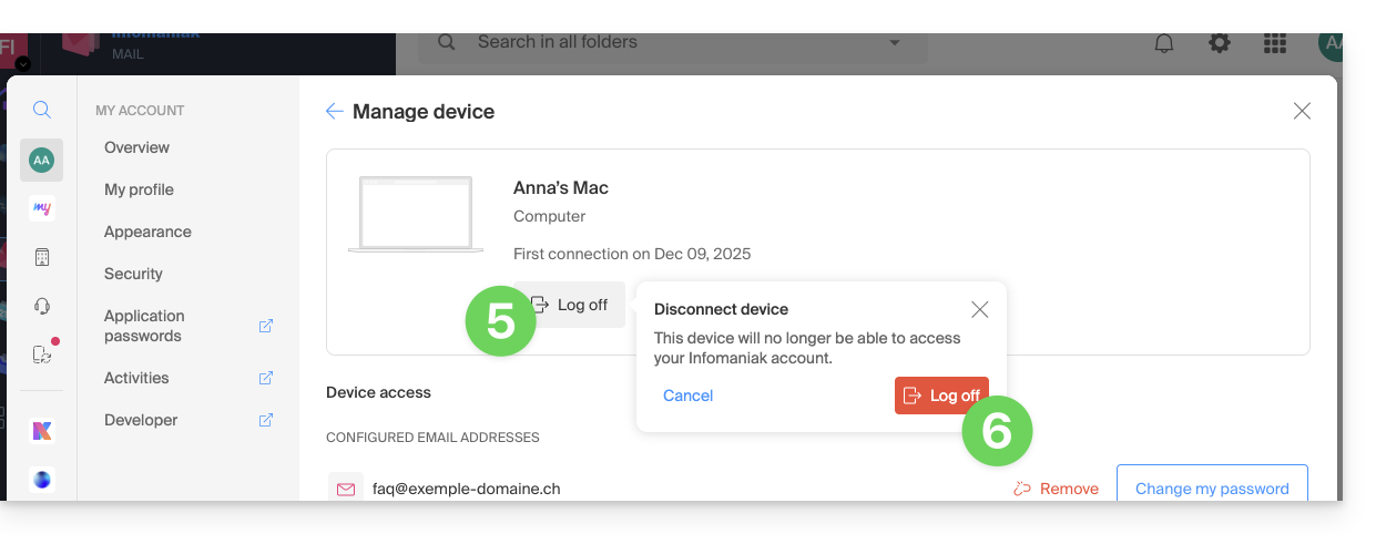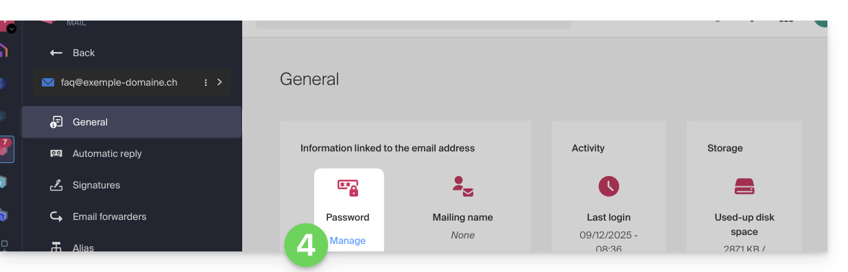 Modifier le mot de passe d'une adresse sur l'app Web Mail Infomaniak