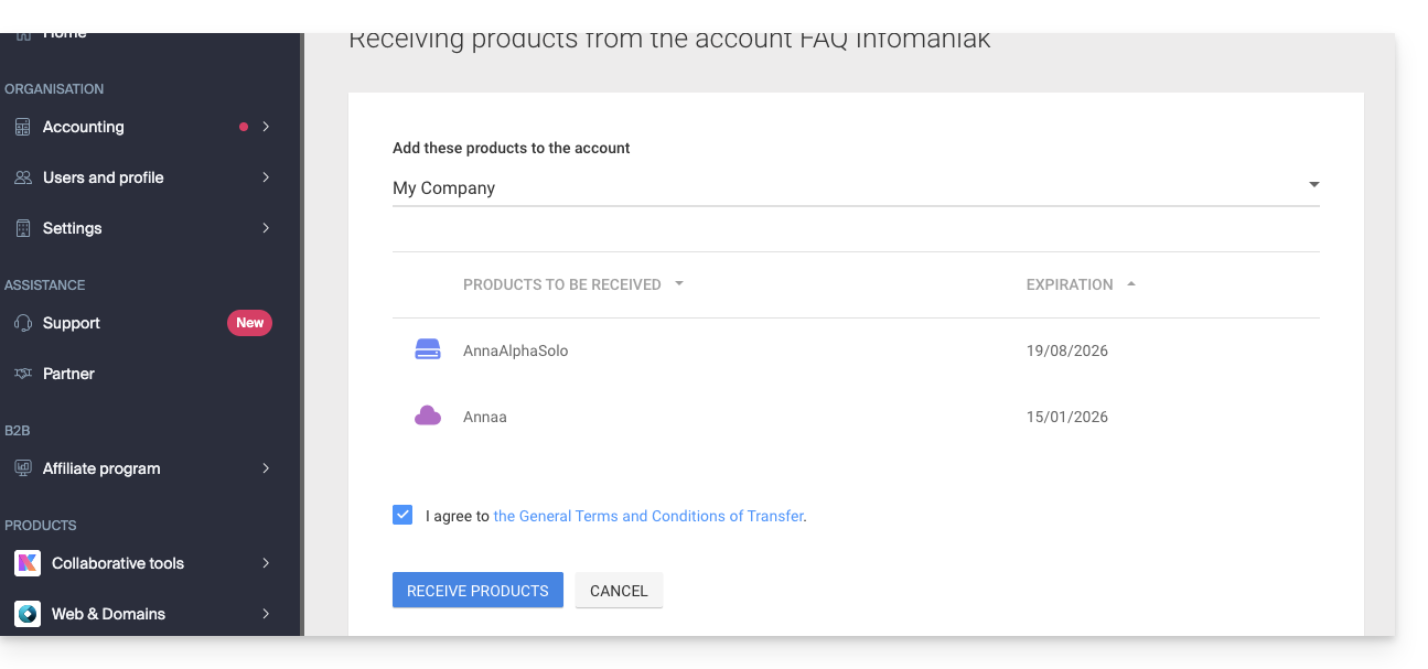 - … tous les produits ou services correspondants à ce nom de domaine sont déjà chez Infomaniak.