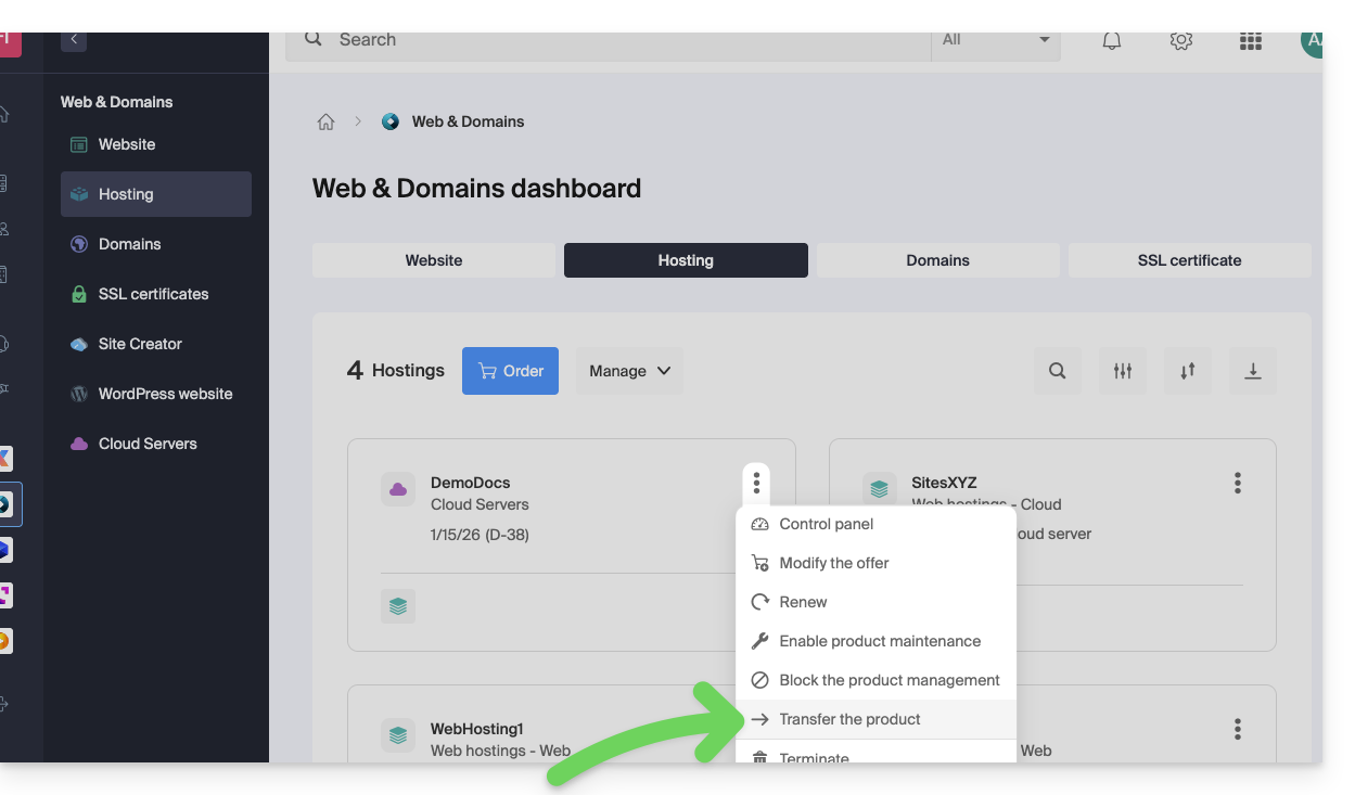 - Transférer le nom de domaine (gestion du domaine, zone DNS, etc.)