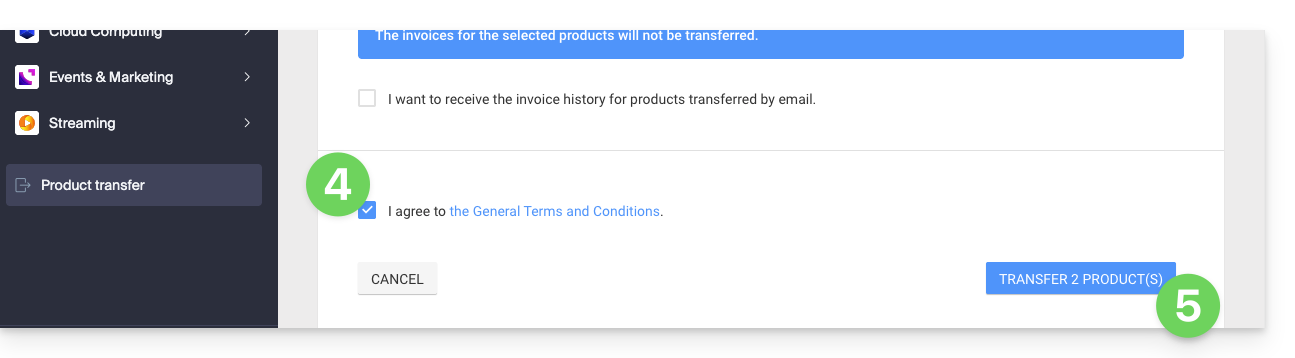 Lisez et acceptez les conditions générales puis cliquez sur Suivant pour terminer la commande: