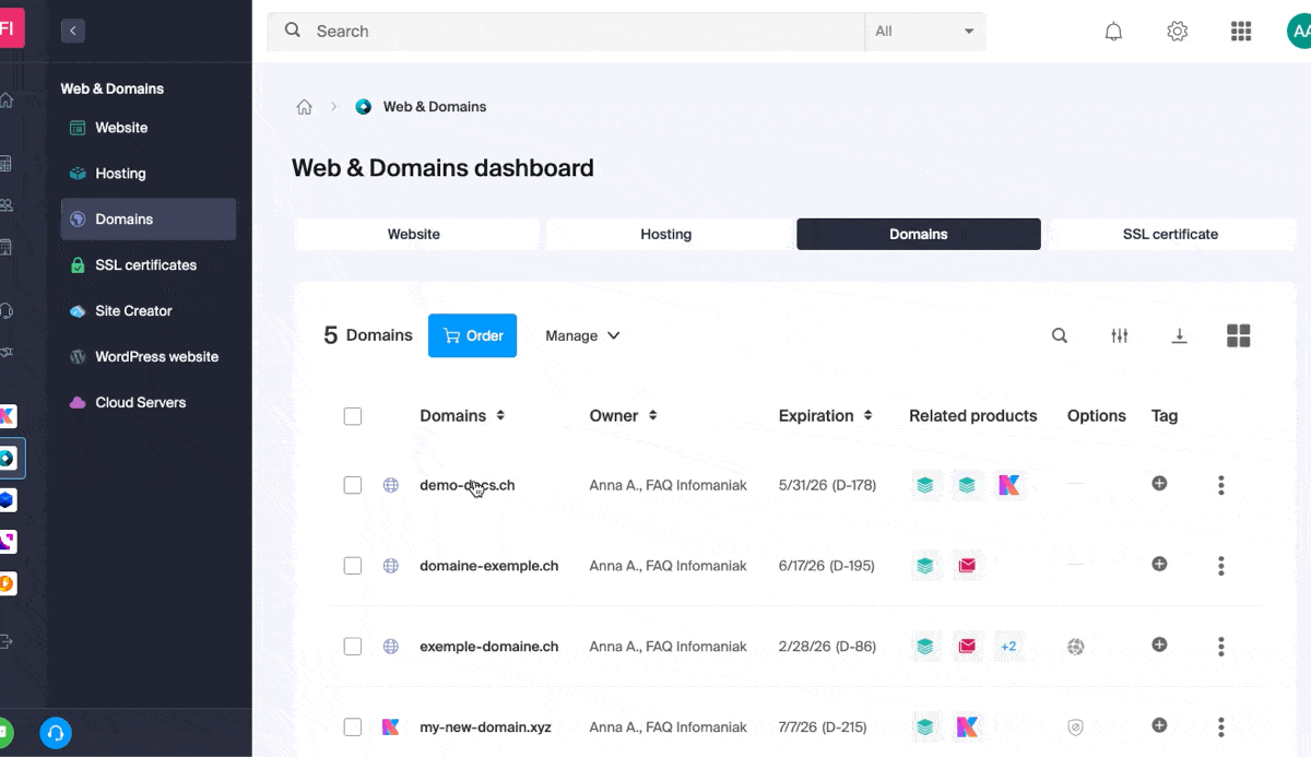 Si votre nom de domaine est enregistré auprès d'Infomaniak et qu'il se trouve dans le même compte utilisateur ou Organisation que la messagerie, alors il n'y a rien à faire.