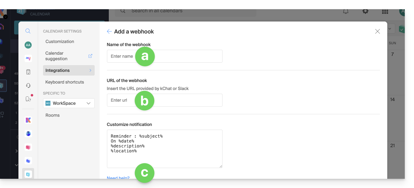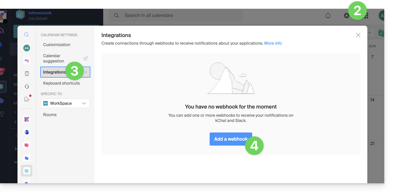 Ce guide vous permet de gérer des applications externes avec kChat à l'aide de webhook.