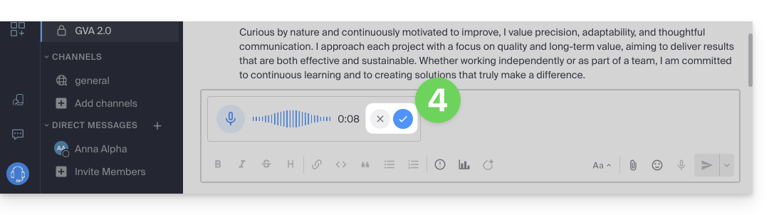 - Une fois le message en cours d'enregistrement, cliquez sur la croix Ă droite de l'enregistrement pour l'effacer, ou sur l'icĂ´ne âś“ pour le conserver: