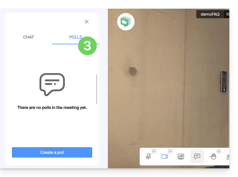 - La barre d'outils en bas de l'écran permet d'activer ou de désactiver le micro, la caméra, etc.: