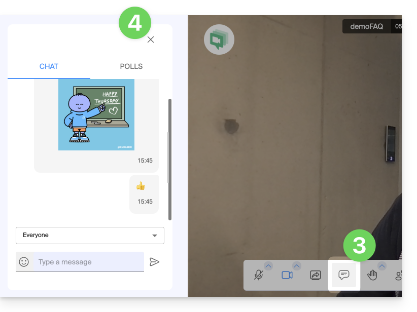 - Un message envoyé depuis la visio (kMeet) sera également visible dans la conversation kChat (et vice-versa).
