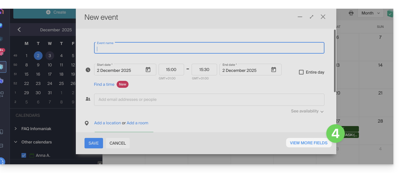 Pour planifier un évènement unique dans un calendrier géré par Infomaniak: