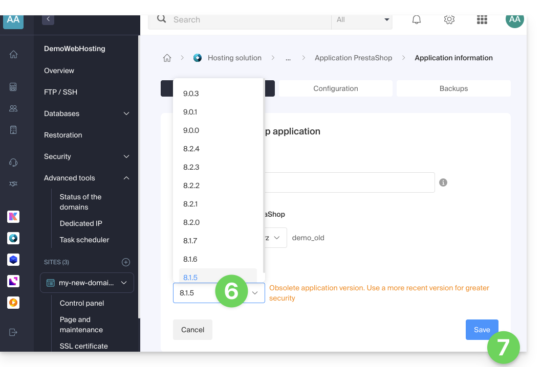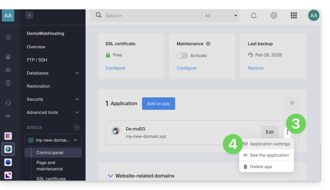 - Créez un «faux site» sur ce nouvel hébergement (par exemple dev.domain.xyz - lire plus bas).