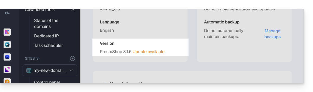 - un Serveur Cloud Infomaniak (si l'hébergement est actuellement mutualisé ou si l'hébergement est déjà sur Serveur Cloud)