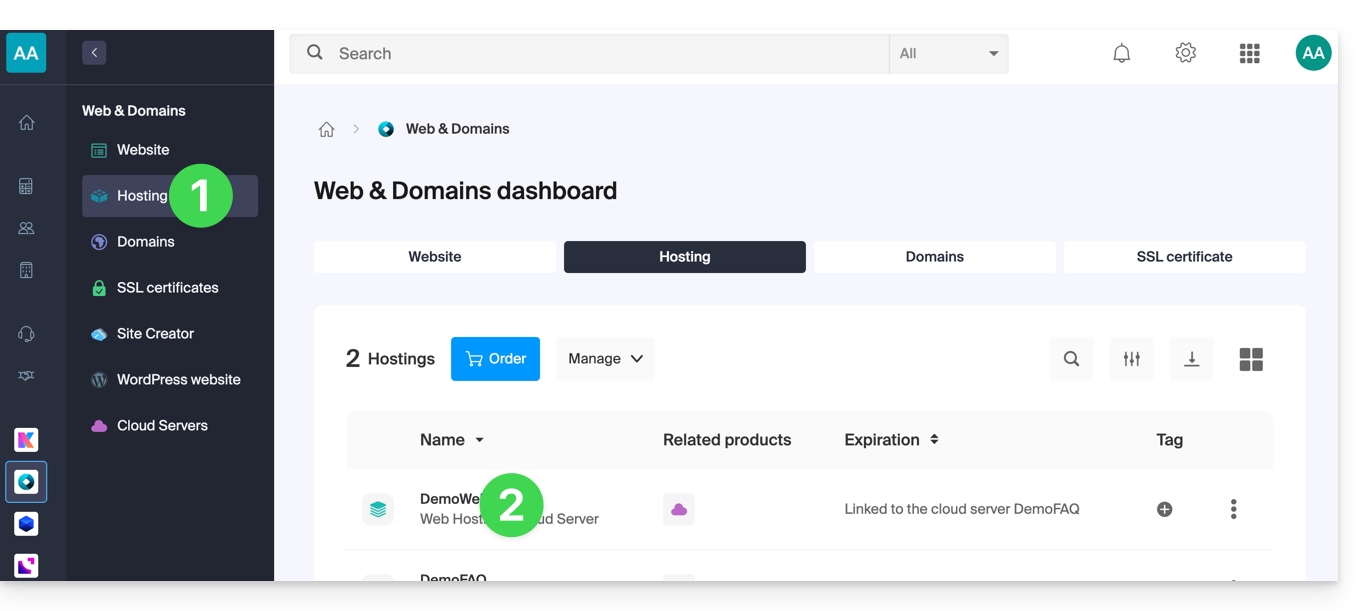 - Cliquez ici pour accéder à la gestion de vos hébergements dans le Manager Infomaniak (besoin d'aide ?).