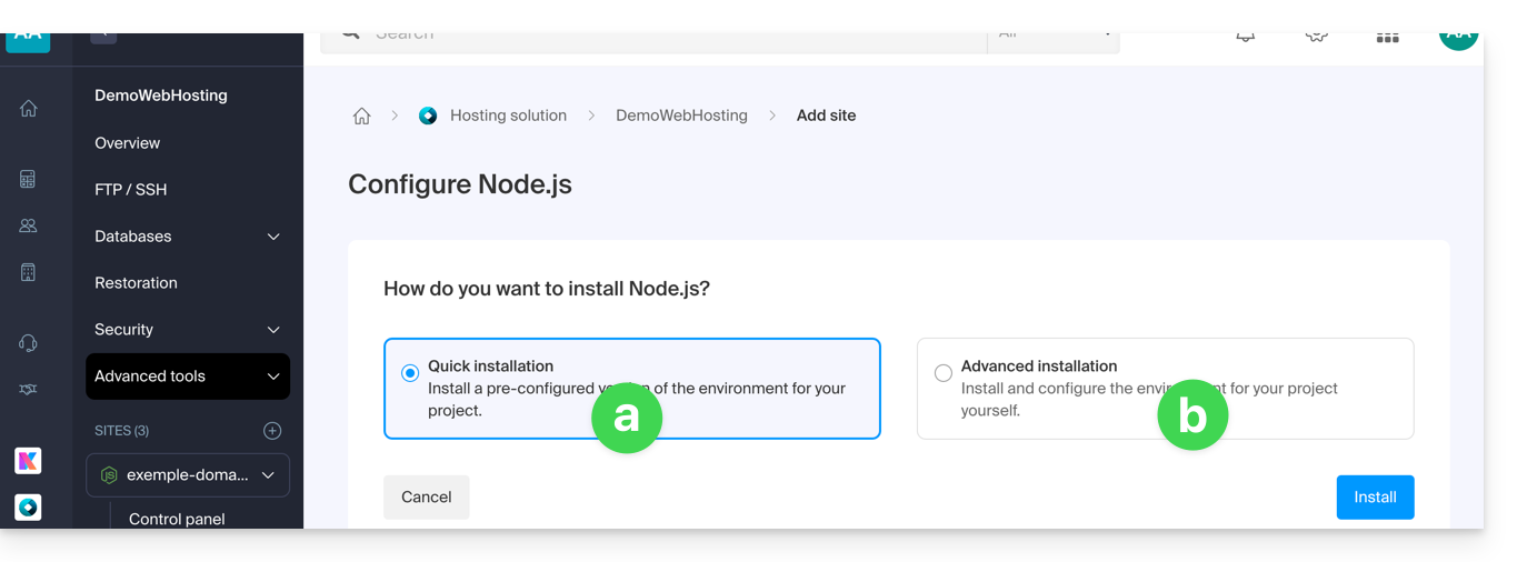 - Installer un site Node.js sur votre hébergement.