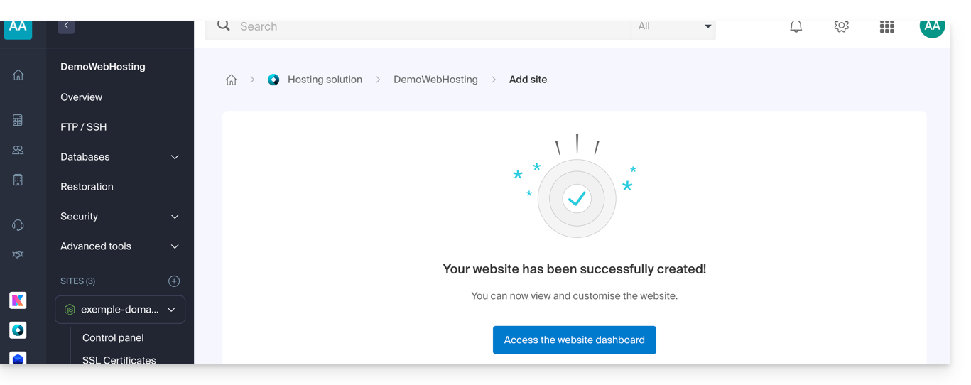 - C'est terminé, le site est prêt: