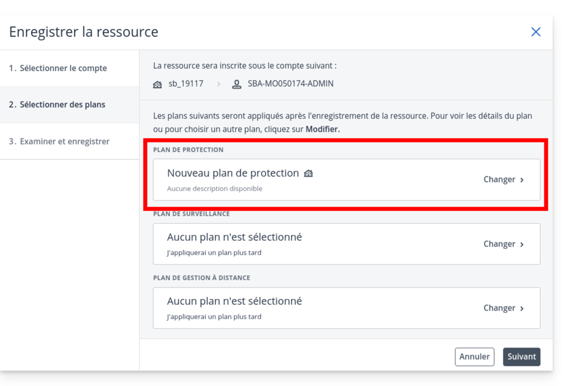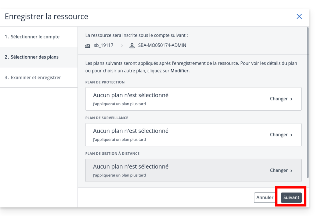 - Important : Sur l'écran de sélection du plan, cliquez sur le menu déroulant