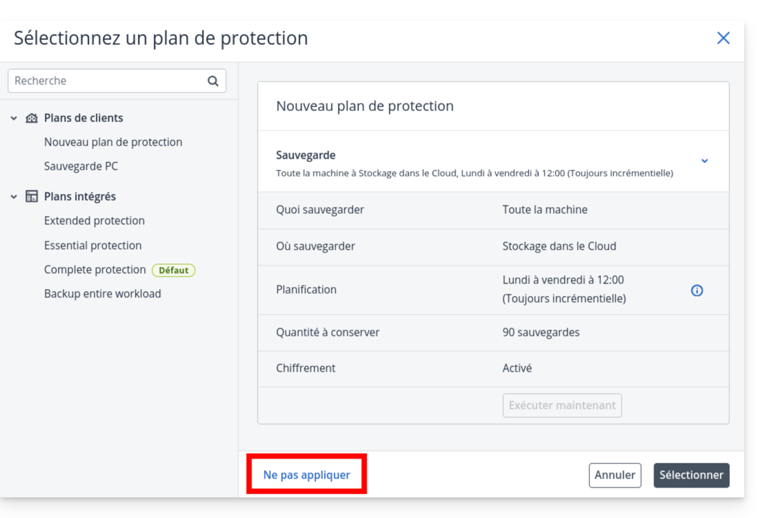 - Définissez vos paramètres de sauvegarde (fréquence, rétention, destination).
