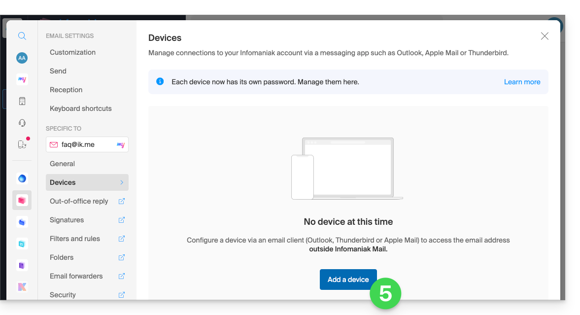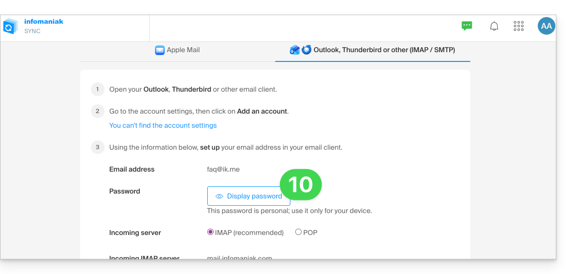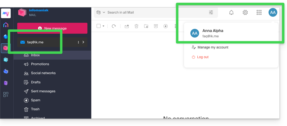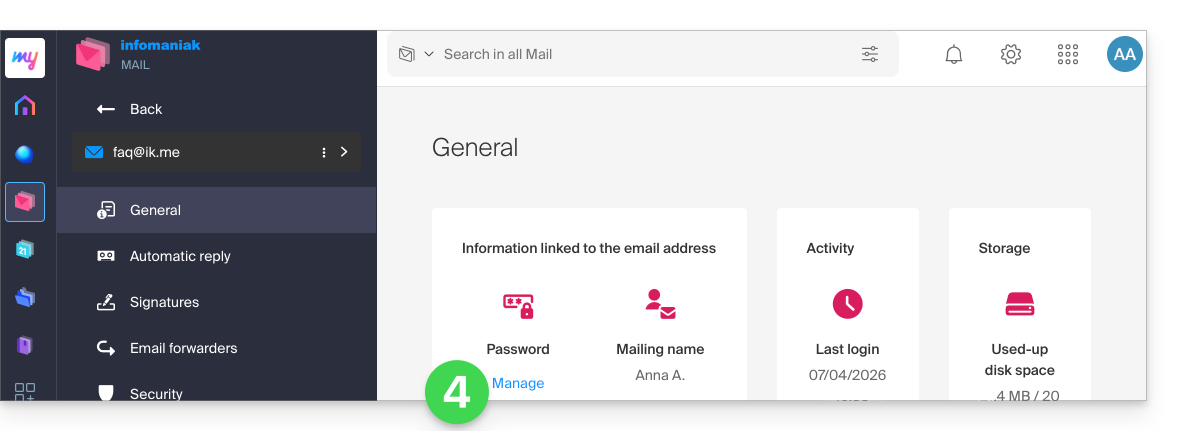 - Posséder un Service Mail sur votre Manager Infomaniak.