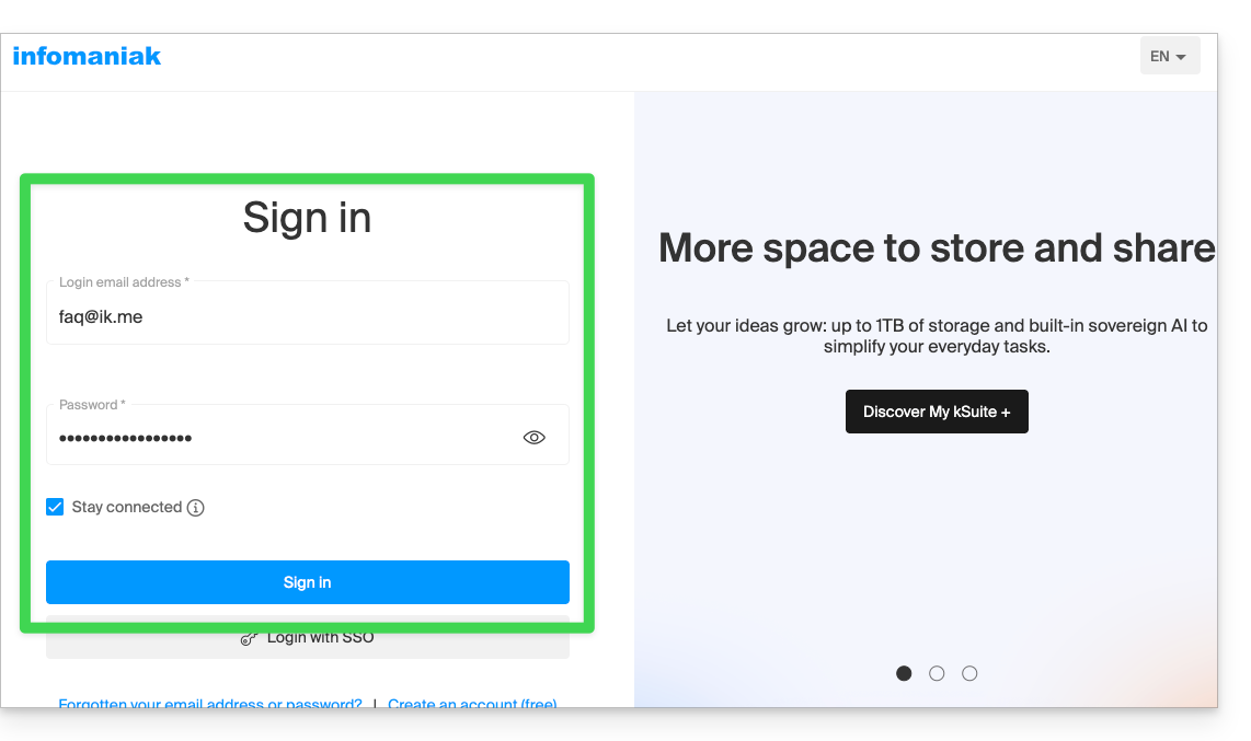 - Si votre Service Mail ne fait pas encore partie d'une kSuite, prenez connaissance de cet autre guide afin d'envisager un éventuel changement d'offre en cours de route.