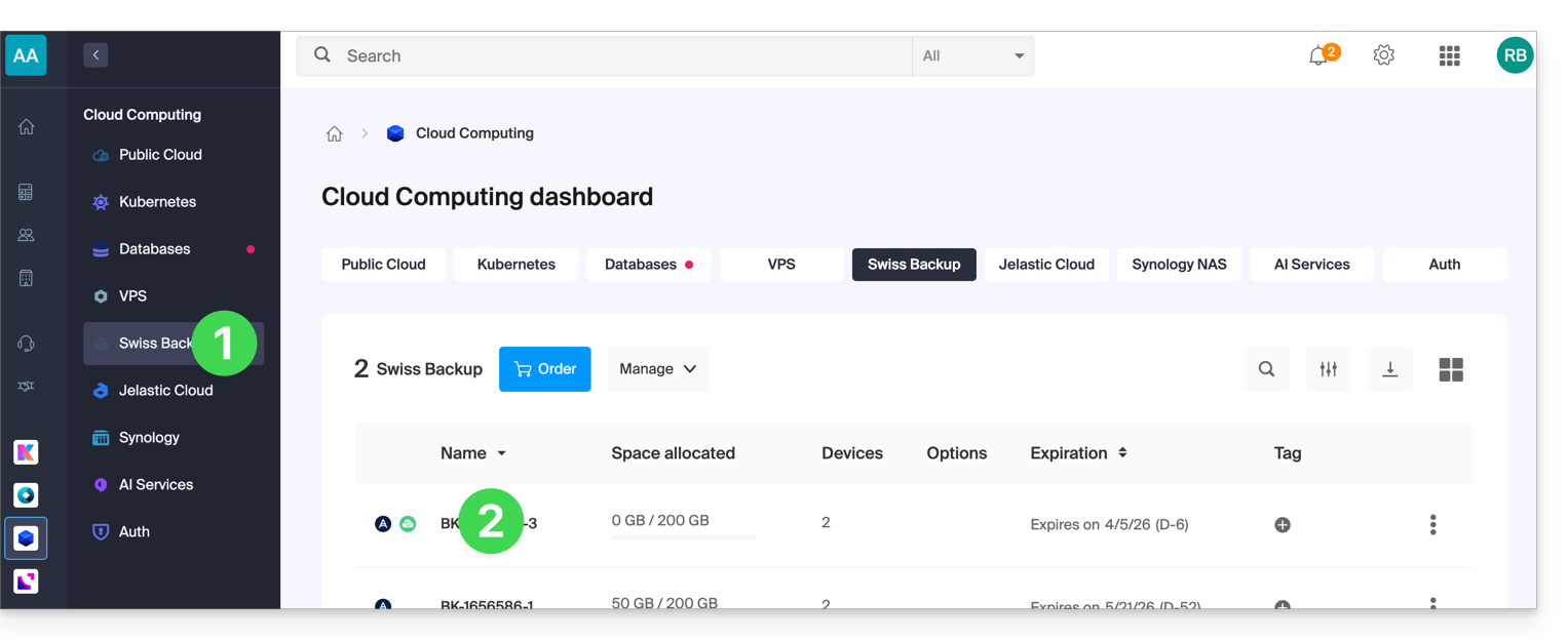 - Cliquez ici afin d'accéder à la gestion de votre produit sur le Manager Infomaniak (besoin d'aide ?).