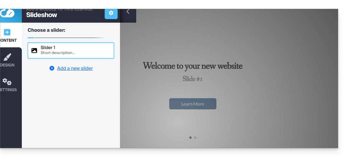 - Cliquez sur Slider: