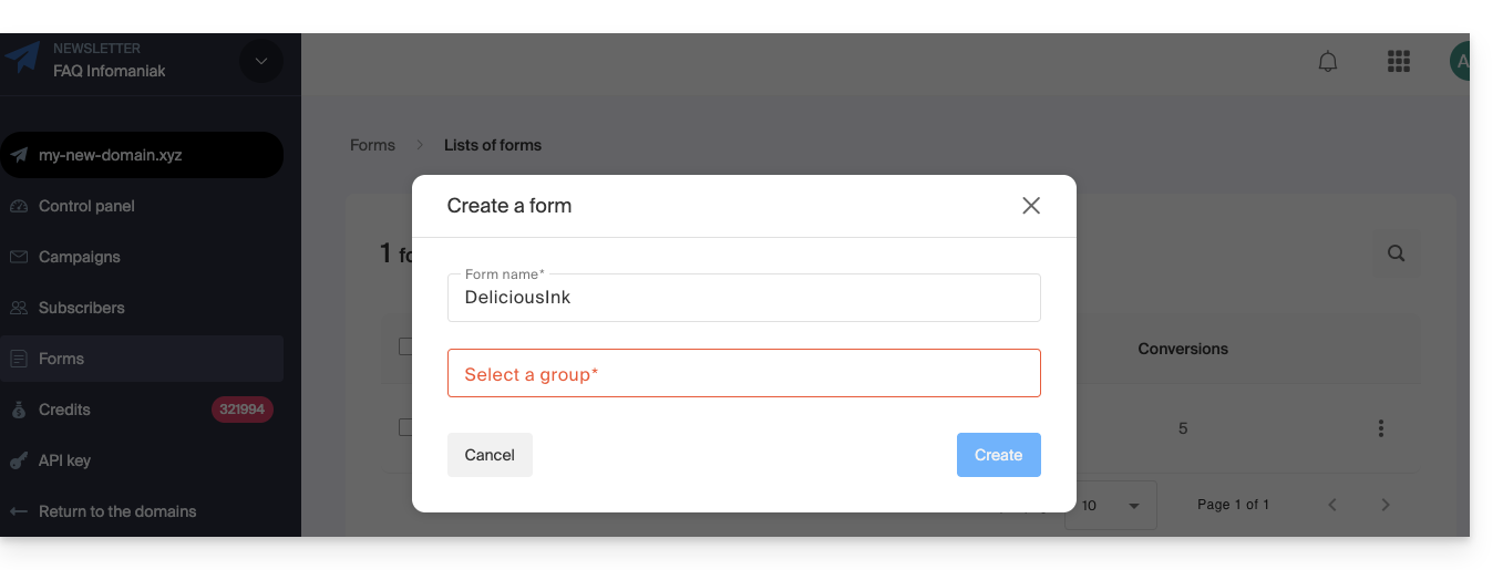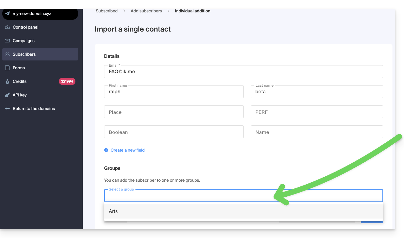 Una volta creato il gruppo, puoi aggiungere un nuovo modulo di iscrizione senza difficoltà e definire quale gruppo deve essere utilizzato per memorizzare i futuri abbonati: