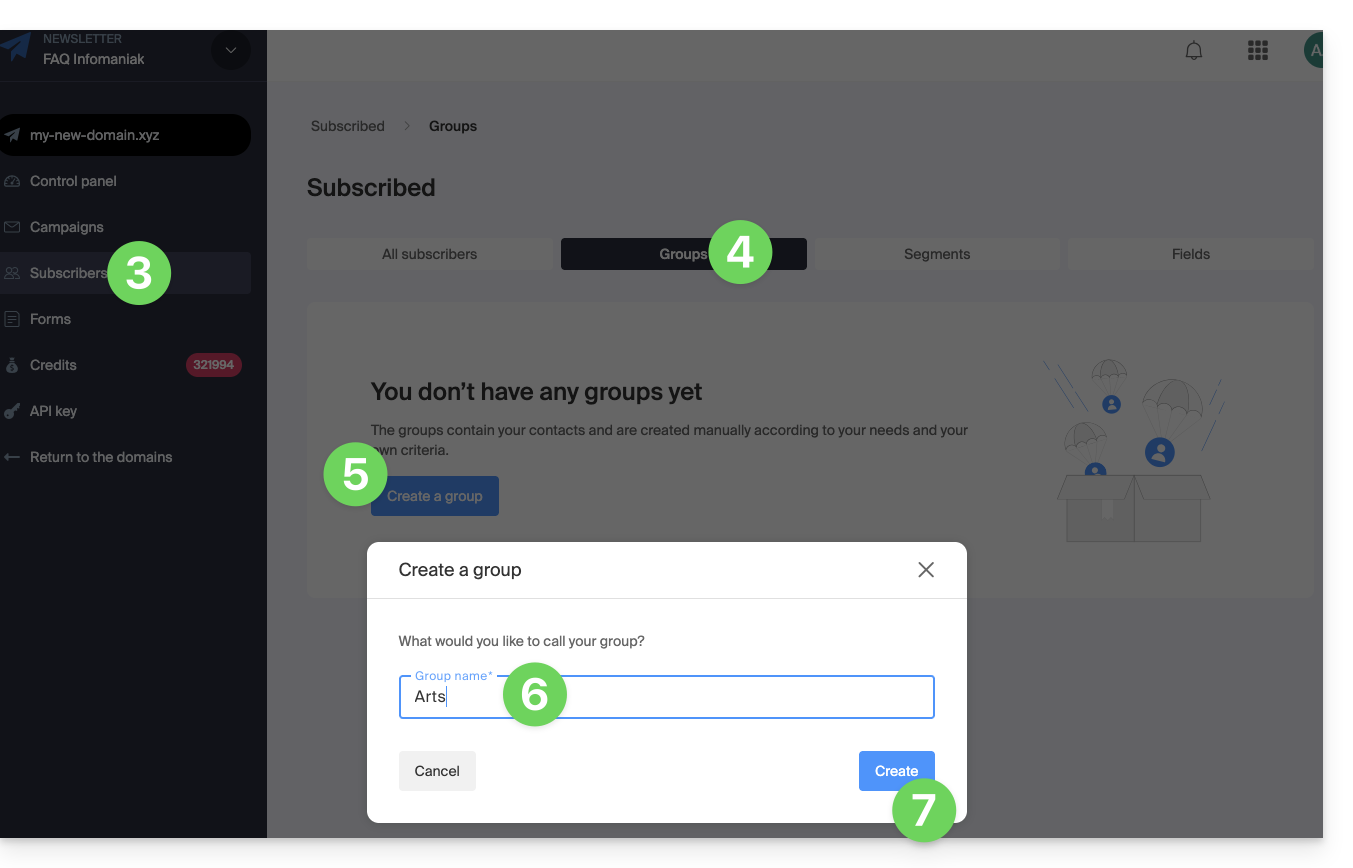 • È necessario creare almeno 1 gruppo per inserire i tuoi futuri contatti/abbonati.