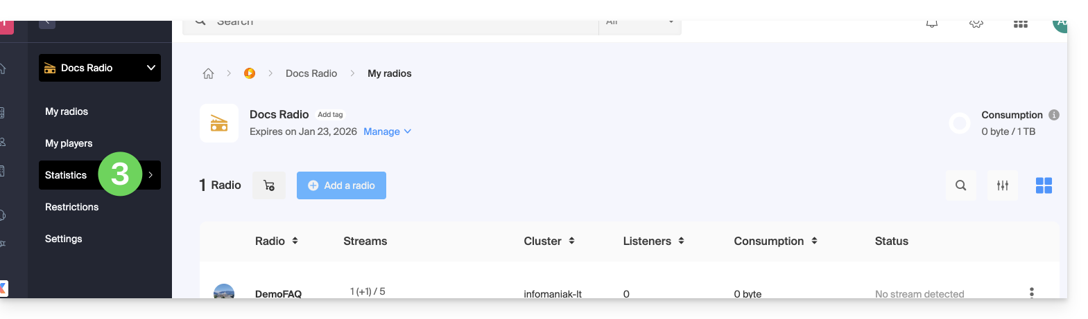 - Cliccate su Statistiche nel menu laterale sinistro: