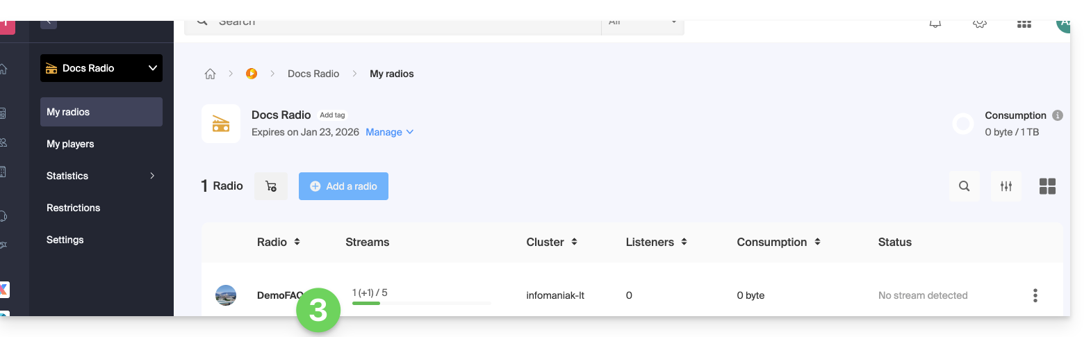- Si noti che in caso di interruzione generale dei flussi di broadcast, le squadre Infomaniak vengono avvisate e intervengono immediatamente.