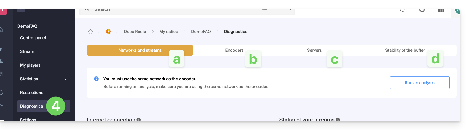 Questa guida consente di eseguire una diagnosi del vostro Streaming Radio per trovare l'origine di eventuali problemi, cause di disconnessione, ecc.