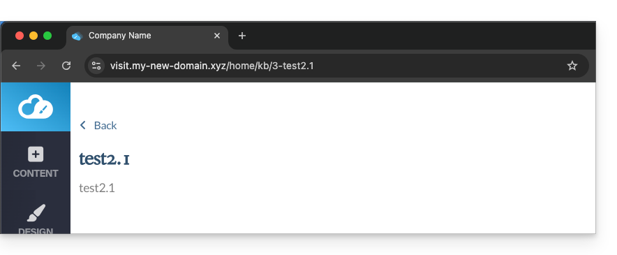 Un clic su una domanda aprirà una pagina Web distinta, con la domanda riportata nel titolo e la risposta sotto. L'URL di questa pagina di risposta sarà composta dall'indirizzo verso la pagina su cui hai posizionato il modulo, seguito da "/kb/X-the-question", X essendo il numero corrispondente all'ordine di creazione delle tue schede: