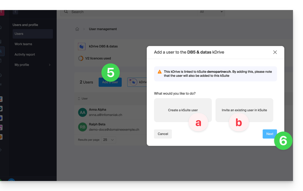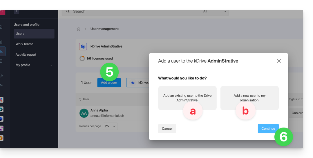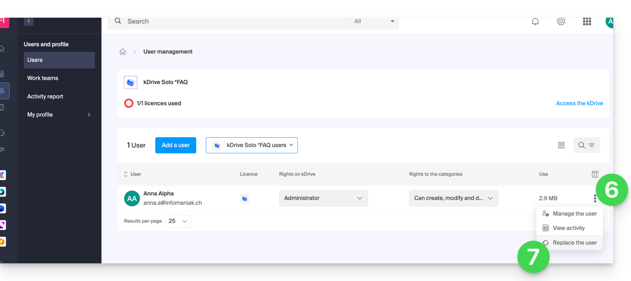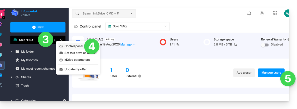 - Possedere un'offerta kDrive con un numero sufficiente di utenti disponibili (bisogno di aiuto?).