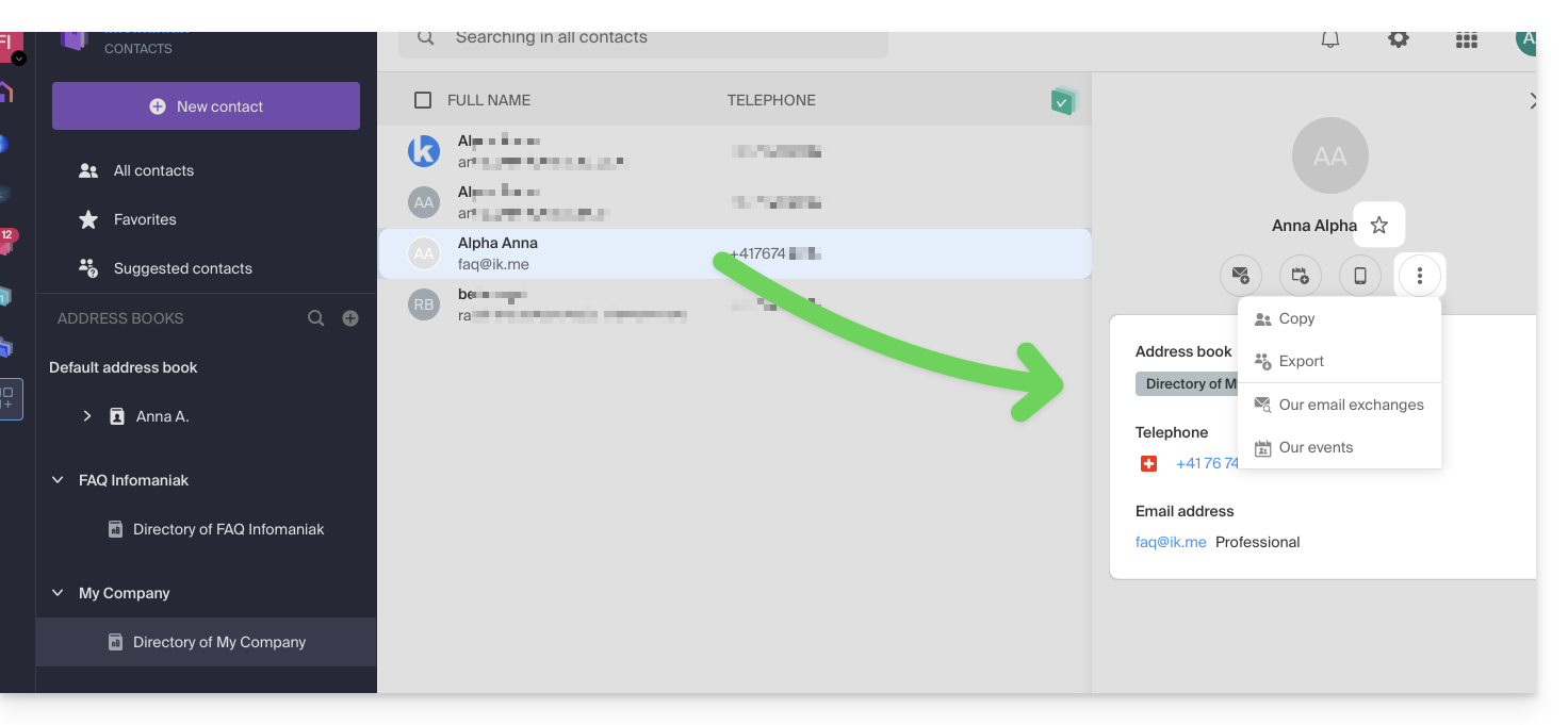 Questa guida dettaglia la gestione del directory dell'Organizzazione, ovvero un elenco di indirizzi “speciale” presente nell'app Web Contatti Infomaniak (servizio online ksuite.infomaniak.com/contacts).
