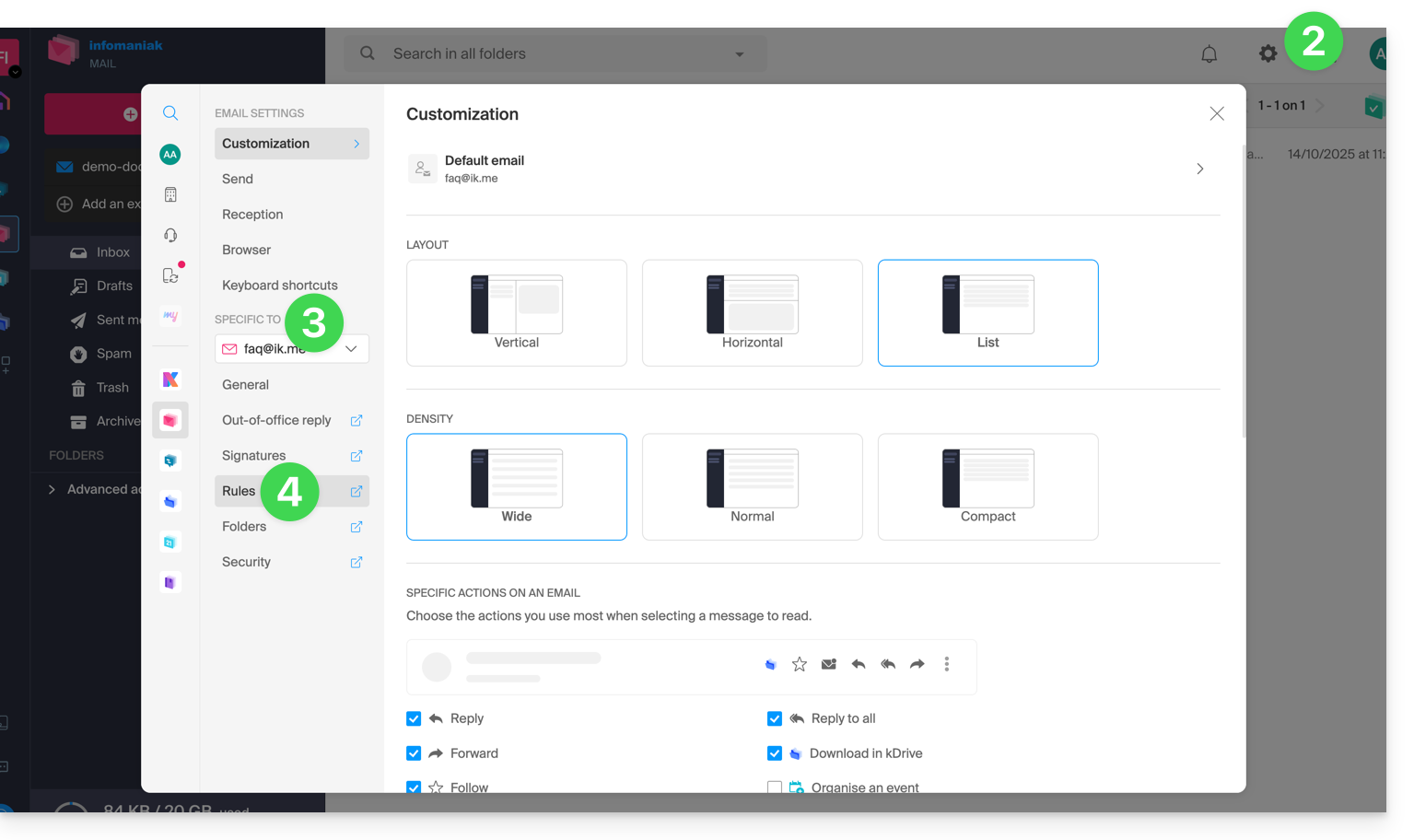 Attivare l'opzione dall'app Web Mail Infomaniak