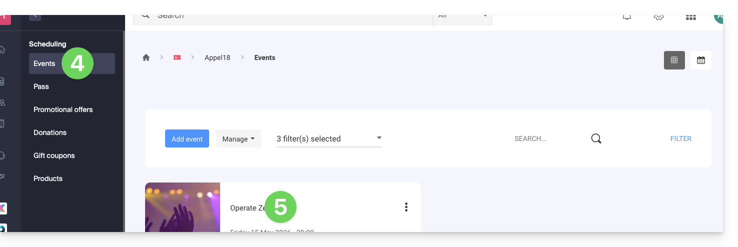 - Andate alla scheda Date del vostro evento.