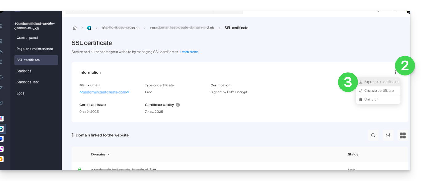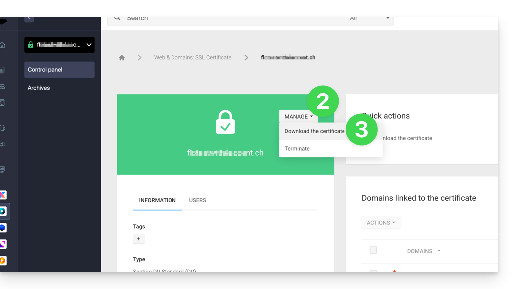 ) - Scarica il certificato generato nel Manager Infomaniak: