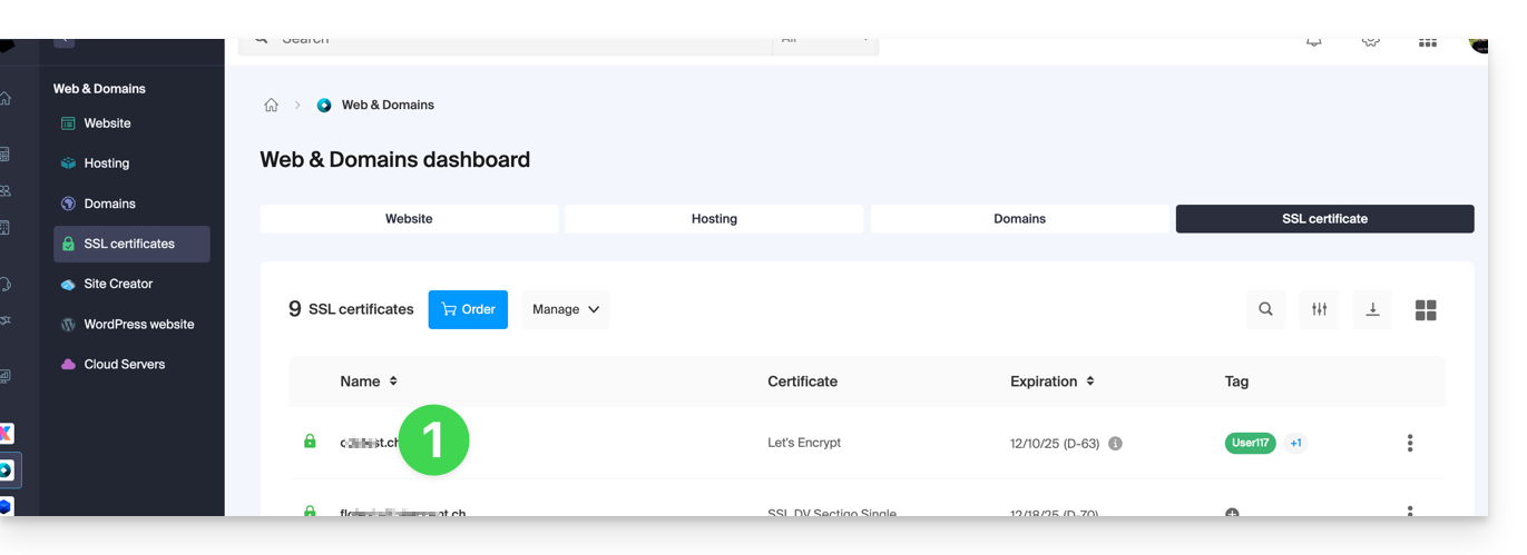 - Clicca direttamente sul nome assegnato al certificato Let's Encrypt nell'elenco: