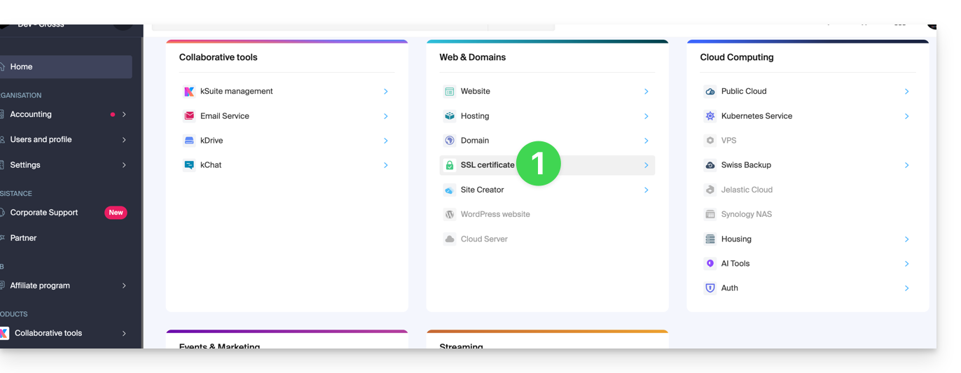 Grazie per aver scelto Infomaniak per sicurizzare i tuoi siti con un certificato SSL EV o DV di Sectigo.
