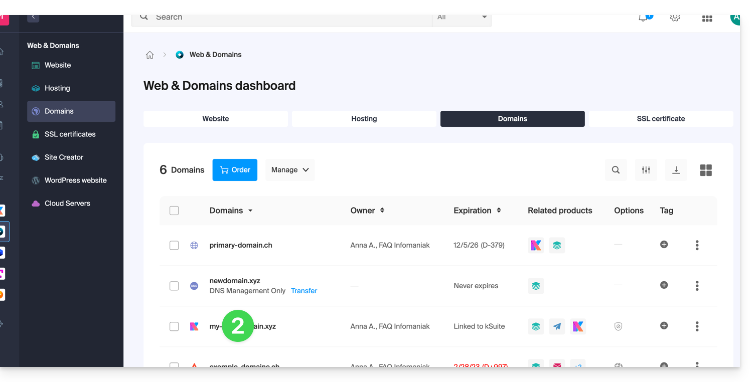 Questa guida spiega Aggiungere un nuovo nome di dominio a un sito web Infomaniak.