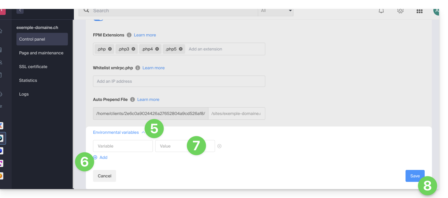 È possibile configurare le variabili di ambiente direttamente dal Manager per l'intero sito web: