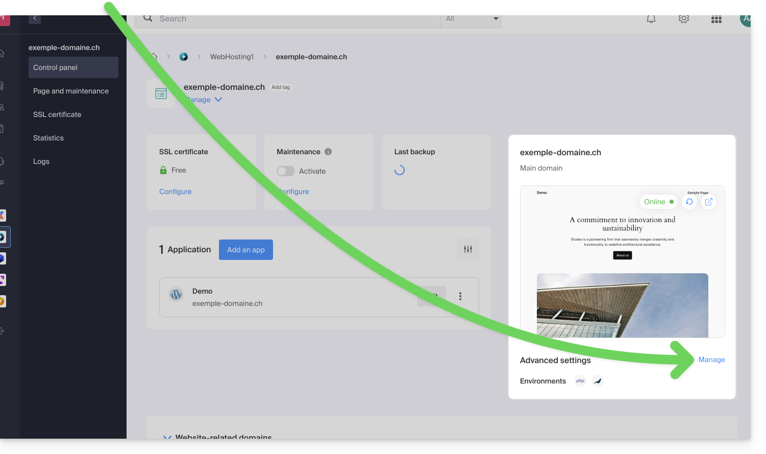 - Se utilizzi Prestashop installato tramite le Apps del Manager Infomaniak, puoi cambiare l'indirizzo molto facilmente.