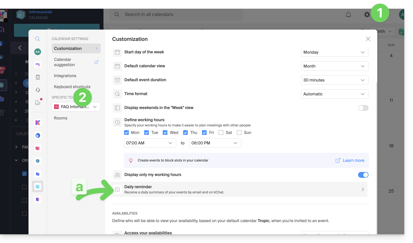 kChat si visualizza nella lingua scelta per il Manager e, come il vostro avatar/foto del profilo, questi parametri sono gestiti all'interno del profilo Infomaniak.
