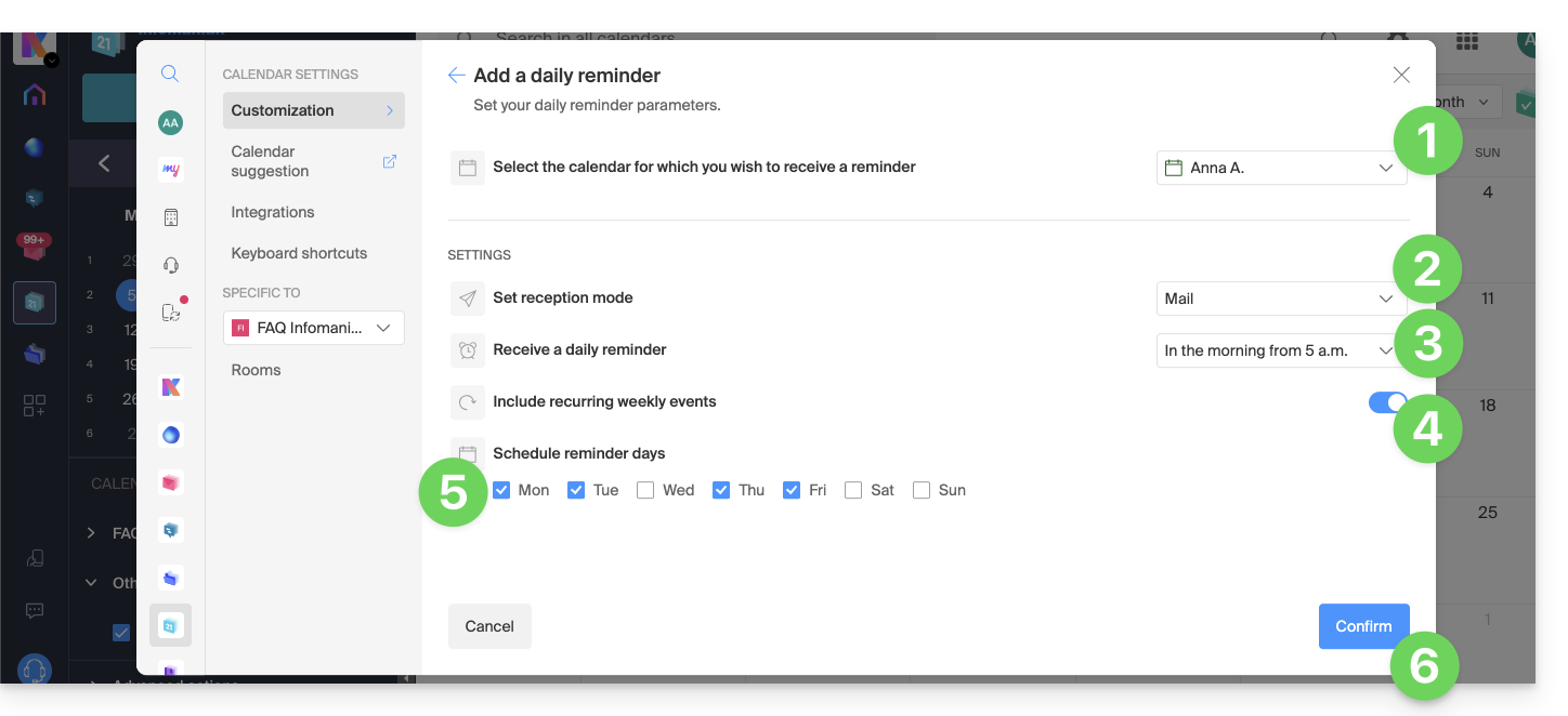 - Definisci come essere notificato (computer/mobile, presente/assente, ecc.) e in quale caso (tutti i messaggi o solo i messaggi con menzione, messaggio seguito, ecc.).