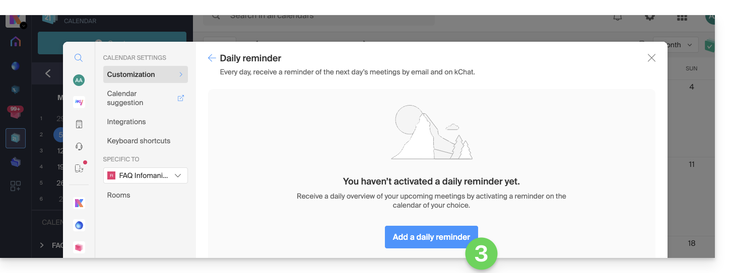 - Clicca qui per accedere all'app Web kChat (servizio online ksuite.infomaniak.com/kchat) o apri l'app desktop kChat (applicazione di desktop su macOS / Windows / Linux).
