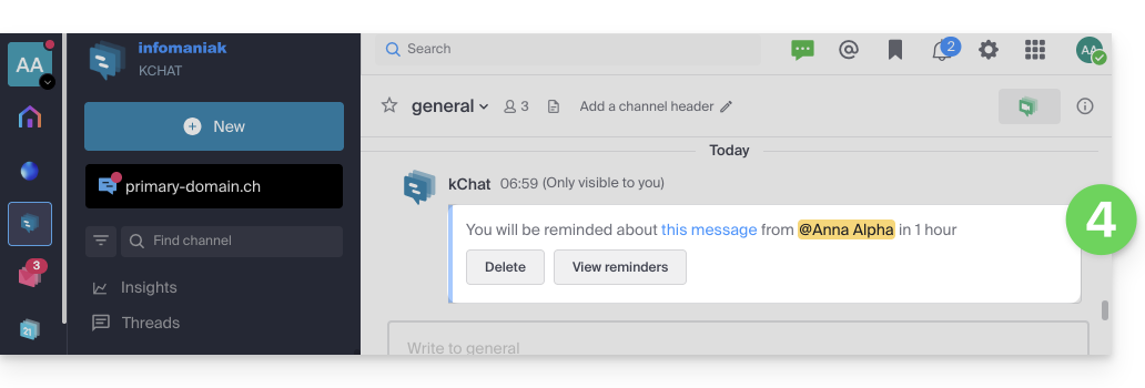 - Accedi all'app Web kChat (servizio online ksuite.infomaniak.com/kchat)