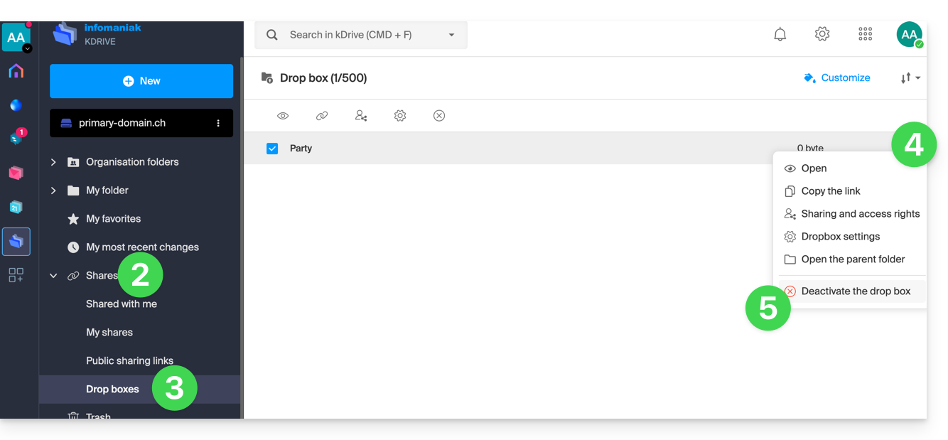 - Clicca qui per accedere all'app Web kDrive Infomaniak (servizio online ksuite.infomaniak.com/kdrive).