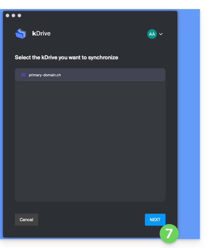 https://IDkDrive.connect.kdrive.infomaniak.com(leggi il capitolo ID kDrive sopra). - Premi Avanti.