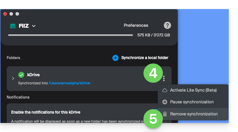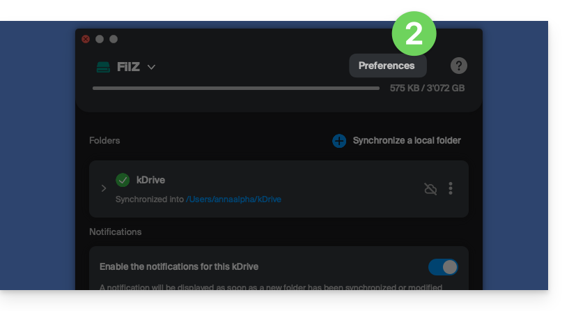 - accedere a kDrive dal gestore di file del sistema operativo.